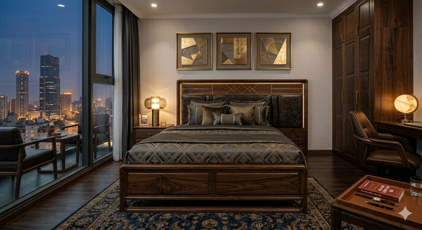 Trong thiết kế nội thất hiện đại, phòng ngủ không chỉ là nơi để nghỉ ngơi sau một ngày dài làm việc, mà còn là không gian khẳng định gu thẩm mỹ và vị thế của gia chủ. Với những doanh nhân thành đạt, một chiếc giường ngủ gỗ phong cách thương gia chính là mảnh ghép hoàn hảo để hoàn thiện không gian sống thượng lưu.